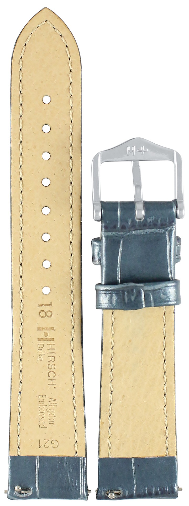 Лучшая итальянская телячья кожа с естественно выглядящим тиснением под аллигатора, полуматовая с характерным двухтоновым эффектом. Подкладочная кожа HIRSCH Softglove. Гармоничная набивка. Тонкая строчка тон в тон. Выраженная линия тиснения на ремешке и шлевках. Застежка в красивом традиционном дизайне от HIRSCH. Цвет металлик.